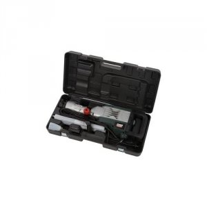 Det har et hjælpehåndtag med låseknap for ekstra kontrol og sikkerhed og leveres i et blæseformet etui med en spids og flad HEX mejsel