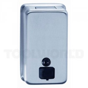 Sæbedispenser i vandalsikkert rustfrit stål til montering på væg. Beholderens mål er: d12cm, b13,5cm, h20,5cm. Beholderens kapacitet er 1,2 liter. Brug f.eks. Plum cremesæbe med BD nr. 50 8081.403