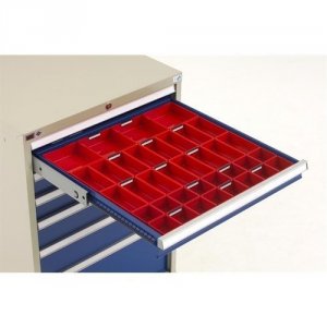 9 stk løse kasser som passer ind i BLIKA´s skuffeskab. Mål: 50x150x150mm.