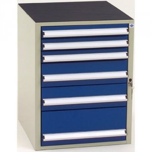Skuffeskab SS 1.6A med letløbende skuffer lejret i skinner med stålkugler og med 100% udtræk. Skufferne er udstyret med skuffespærre. Toppen er som standard udstyret med en riflet gummimåtte. Skabet har i alt 6 skuffer - 1 stk. på 198 mm., 2 stk. på 132 mm. og 3 stk. på 66 mm. i højden. Blika tilbyder en lang række af spændende udbygningsmuligheder - se tilbehør nedenfor.