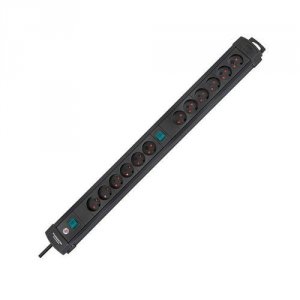 Stikdåse 12 udtag med jordstik, Sort i super kvalitet fra Brennenstuhl. Udtag vinklet 45 grader hvilket gør det lettere montage af stik. Stikdåsen er børnesikret og med Dansk jord. Ledning på 3 meter som kan rulles om stikdåsen, som også er forsynet med ophængskrog og huller til montering på væg.