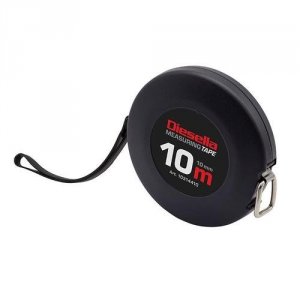 Heavy duty stålbåndmål med nylonbelagt bånd som gør båndmålet ekstra slidstærkt. Med gult båndmål, sort mm-skala og røde tal for hver 1 meter.