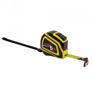 Let og slidstærk prof. båndmål med Auto-lock. Med gult båndmål, sort mm-skala, røde tal for hver 10 cm og magnet.