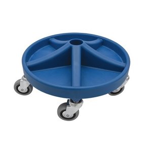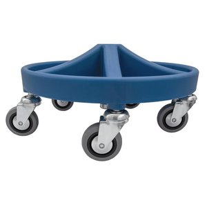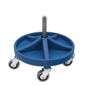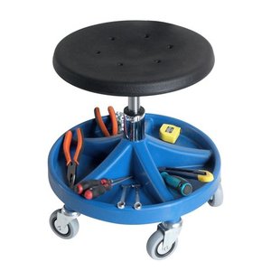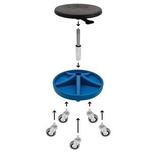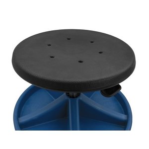 Blå montørstol/taburet med sæde i pu-skum, fodkryds med 5 rum, 5xø75 hjul og højde 310-390 mm