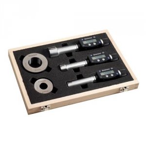 Bowers digitale 3-punkts mikrometer sæt måleområde 50-100mm. Stor og klar LCD-skærm. IP67 beskyttelsesklasse. Inkl. 65 mm og 80 mm kontrolringe og certifikater.