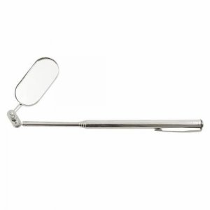 Inspektionsspejl med teleskopskaft for øget arbejdslængde, praktisk pen-type m. lomme clips, ellipse spejl giver god synlighed i skjulte områder.