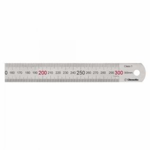 Matforkromet. Inddeling: 1 mm og 0,5 mm, gevind­tabel + omsætningstabel fra tommer til mm på bagsiden.
