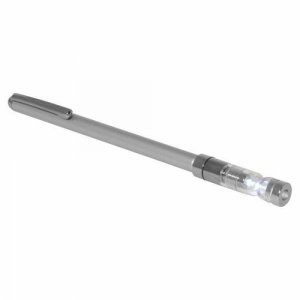 Magnetisk teleskop magnet med LED-lys. Lyset tændes automatisk når armen trækkes ud og slukkes automatisk når den vender tilbage til normal position. Teleskopet har en kraftig magnet med trækkraft på 1,3 kg / 11N.