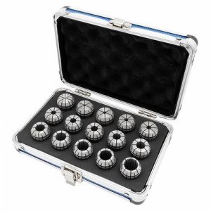 ER25 Spændetænger i sæt med 15 stk. Standard type. Størrelser i sættet 2-16 mm.