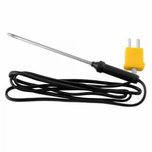 Isoleret indstiksføler. Hurtigreagerende temperaturføler med frilagt målespids af rustfrit stål. Anvendes ved indstik i emner, eller ikke aggressive flydende medier, hvor kernetemperaturen skal måles. Isoleret håndtag. Kabellængde: 1 meter.