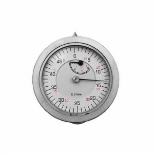 Analogt måleur 0-3 mm x 0,01 mm med horisontal urskive. Inkl. en modvægt monteret under måleuret. Arbejdsområdet justeres med de forskellige forlængere og spidser. Aflæsning: 0,01 mm. Skala: 0-100.