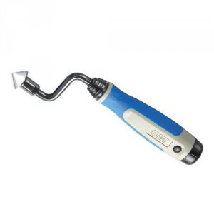 Håndtaget er lavet af plastik med en gummibelægning, så du er sikret en godt greb. Håndtaget er et alsidigt værktøj, da den passer til alle klinger og kan derfor kan bruges til mange forskellige emner