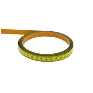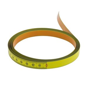 Selvklæbende målebånd i stål 3M x 13 mm med dobbeltsidet klæbebånd. Graderet fra højre til venstre med kontinuerlig gradering af mm og cm.