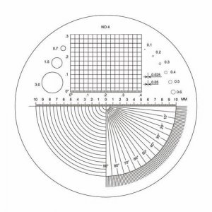 Skala nr. 4 til målelup 10x forstørrelse (art. 15405226) Vinkler, radius, diameter, bredde osv. kan måles hovedsageligt i millimeter
