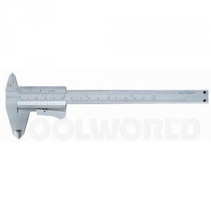 Skydelære DIN 862, med klemmelås, 150 mm, aflæsning 0,05 mm, dybdemål, målestav og nonius matforkromet.i platetui