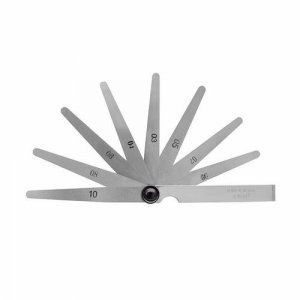 Fjederkonstante stålblade i konisk form med påskrift af tykkelse. Forniklet holder med nittet led som kan spændes. Nøjagtighed efter klasse T2.