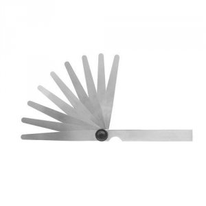 Fjederkonstante stålblade i konisk form med påskrift af tykkelse. Forniklet holder med nittet led som kan spændes. Nøjagtighed efter klasse T2.