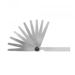 Fjederkonstante stålblade i konisk form med påskrift af tykkelse. Forniklet holder med nittet led som kan spændes. Nøjagtighed efter klasse T2.