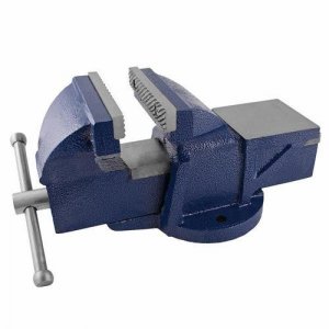 Ekstra kraftig skruestik udført i støbejern med hærdede bakker og indkapslet spindel.