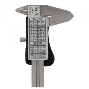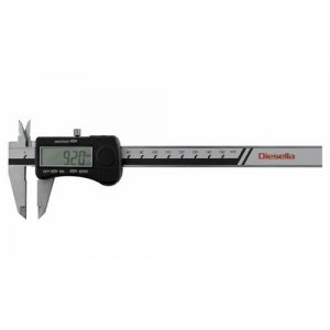 Standard digital værkstedsskydelære i rustfrit stål. Måler fra 0-150 mm med 0,01 mm aflæsning og kæbelængde på 40 mm.