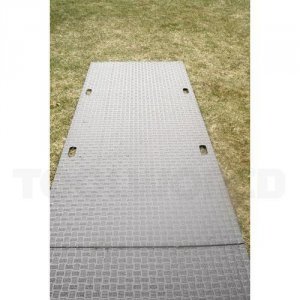 Køreplade For beskyttelse af arealer i forbindelse med kørsel med tunge køretøjer. Materiale: Esplan (plast) Mål: 12x1150x3000 mm Med nopret overflade (Narv 8) og 4 løftehuller Vægt: 38 kg