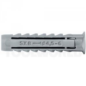 SX düblen kan anvendes i både hulsten og massive byggematerialer. - kan anvendes med meget varierende skruetyper og -diametre. Den er især velegnet til spånpladeskruer. Velegnet til: - Maksimal bæreevne i massive byggematerialer. - Alle beton- og murmat