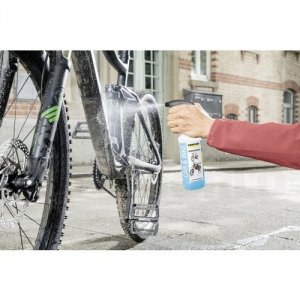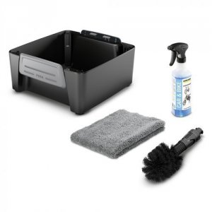 Bike Box – til mountainbike. Kassen indeholder blød universalbørste og specialrengøringsmiddel, der fjerner vanskeligt snavs. Desuden medfølger blød mikrofiberklud til aftørring af cyklen – så cyklen kan sættes direkte på plads, når du kommer hjem.