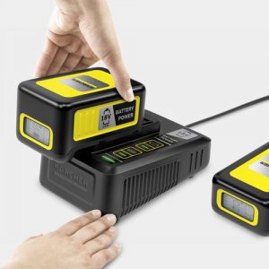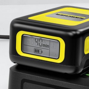 Hurtiglader til Kärchers 18V system. Når du bruger hurtig opladeren kan du oplader et 18V / 2.5 Ah Kärcher Battery Power batteriet til 80% på 44 minutter, og et 18V / 5.0 Ah Kärcher Battery Power Batteri til 80% på 94 minutter.