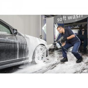 Kort, praktisk skumlanse med justerbar sprøjtevinkel med 1 liter vaskemiddel. Ideel til rengøring af biler på grund af dets kompakte design.