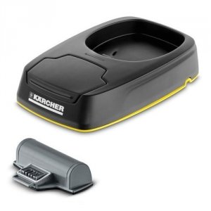 Ekstra oplader og batteri til Kärcher WV5. Køber du dette opladersæt til din WV5 vinduesvasker har du mulighed for at have det ene batteri til opladning mens du arbejder med det andet. Slut med ventetid til opladning - du er altid igang med et batteri med strøm på. Passer KUN til modellen WV5.