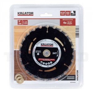 Rundsavsklinge 150 mm FS med 24 HM tænder fra Kreator i rigtig god kvalitet. Klingen er ideel til at save i forskellige slags blødt træ, hårdt træ, laminat og træ hvori der sidder søm. Rigtig lang levetid.