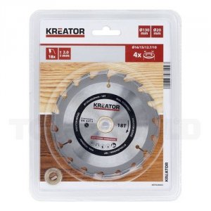 Rundsavsklinge 130 mm med 18 HM tænder fra Kreator i rigtig god kvalitet. Ideel til at save i både blødt og hårdt træ.