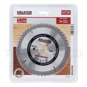 Rundsavsklinge 170 mm med 48 HM tænder fra fra Kreator i rigtig god kvalitet. Ideel til at save i både blødt og hårdt træ.