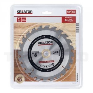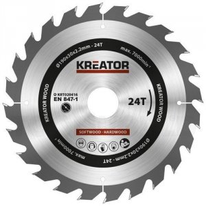 Rundsavsklinge 190 mm med 24 HM tænder fra Kreator i rigtig god kvalitet. Ideel til at save i både blødt og hårdt træ.