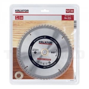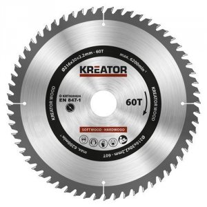 Rundsavsklinge 216 mm med 60 HM tænder fra Kreator i rigtig god kvalitet. Ideel til at save i både blødt og hårdt træ.