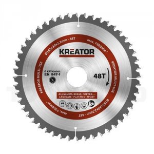 Rundsavsklinge 185 mm ALU med 48 HM tænder fra Kreator i rigtig god kvalitet. Ideel til at save i lette metaller, plast, laminat og parket.