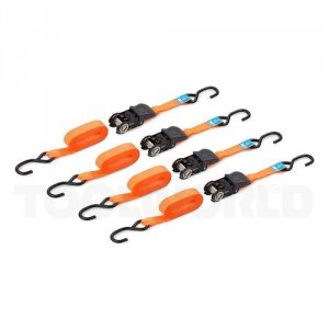 Båndsurringsæt 4 stk. 25 mm x 4,5 meter i super kvalitet fra Kreator. Sættet har kraftige S kroge.