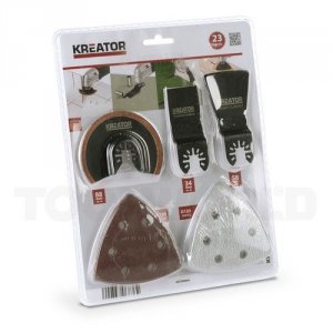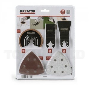 Multicutter tilbehørsæt 23 dele fra Kreator. Med dette sæt har du rig mulighed for at få klaret forskellige jobs med din multicutter.