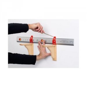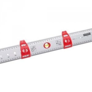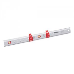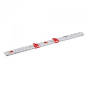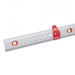 Aluminiumslinial med en længde på 750 mm/75,2 cm og indbygget vatterpas. Linialen er udstyret med markeringshuller ved 3/4/5/6/8/10 mm, samt 4 markeringshuller med en afstand af 72 mm.