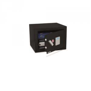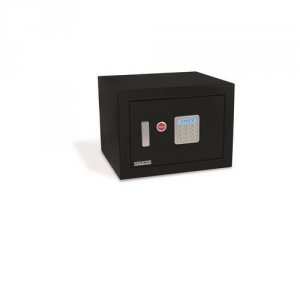 Elektronisk og brandsikkert pengeskab med målene: 450 mm x 330 mm x 395 mm. Denne værdiboks er super smart til dine betydningsfulde genstande, da den kan låses med kodelås eller en af de to nøgler, der medfølger.
