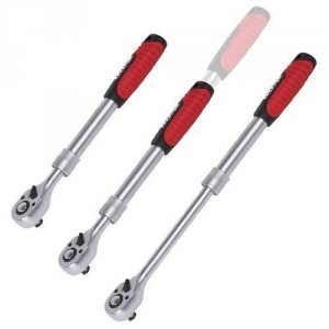Skraldenøgle 1/2 med teleskop 15-44 cm Håndtag 2 komponent gummigreb Tænder 72 stk Længde 300 mm Længde med teleskop 440 mm Satin finish Crome vanadium stål