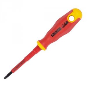 VDE godkendt skruetrækker med Philips PH1x80 mm kærv fra Kreator. Når du arbejder med el under spænding er det nødvendigt at benytte en VDE godkendt skruetrækker. Godkendt IEC 60900:2004.