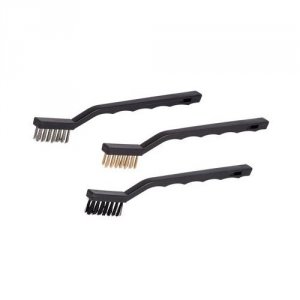 Mini hånd stålbørstesæt 3 dele, anvendes til tændrør og steder hvor pladsen er trang.