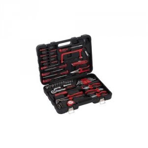 Værktøjssæt á 83 dele, blandt andet indeholende: svensknøgler, skruetrækkere, bits, målebånd, hammer, tænger, skævbider og mange andre ting. Dette værktøjssæt er super universialt og et rigtig godt udgangspunkt på værkstedet, uanset om du er den store handyman eller bare skal fikse et par småting i ny og næ.