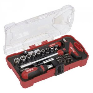 Sættet er derfor oplagt vis du søger noget der lige kan hjælpe med diverse skrueopgaver uden at fylde for meget. Leveres i praktisk æske, så du altid har alle delene samlet.
