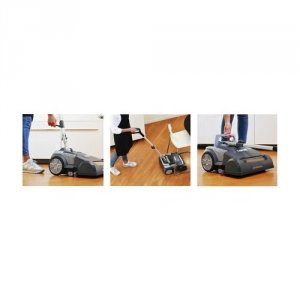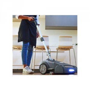 Maskinen er udstyret med en valsebørste som vasker gulvet grundigt, og har en yderst let håndtering af rent og beskidt vand fra de 2 aftagelige beholdere.