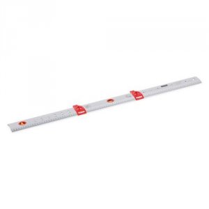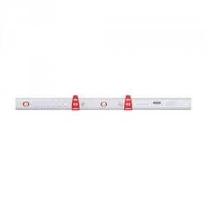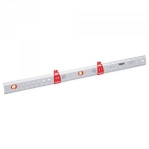 Aluminiumslinial med en længde på 900 mm/90 cm og indbygget vatterpas. Linialen er udstyret med markeringshuller ved 3/4/5/6/8/10 mm, samt 4 markeringshuller med en afstand af 72 mm.