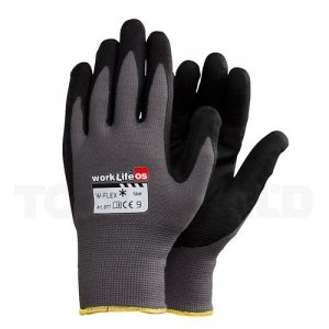 Handske W-flex str. 10 Grå halvdyppet strik. Letforet allround handske til brug i kølige omgivelser. Godkendt efter: EN420:2003+A1:2009