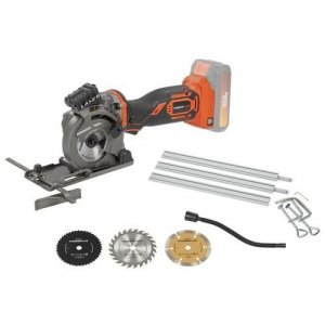 Denne 20 V mini dyksav fra Dual Power line er ideel til skæring i spånplader. Saven er udstyret med en Ø89 mm savklinge, der giver en maksimal skæredybde på 28 mm. Derudover kan denne batteridrevne rundsav også bruges til brædder og laminat. Afhængigt af det monterede savblad er denne Dual Power-sav også velegnet til stenfliser og bløde metalplader med en maksimal tykkelse på 3 mm.