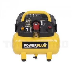 Kraftig oliefri kompressor 1,5 hk, 6 liter, hvor lufttrykstrømmen kan styres. Perfekt til at pumpe dæk, rengøre eller som hjælp til maskiner, motorer og værktøj.